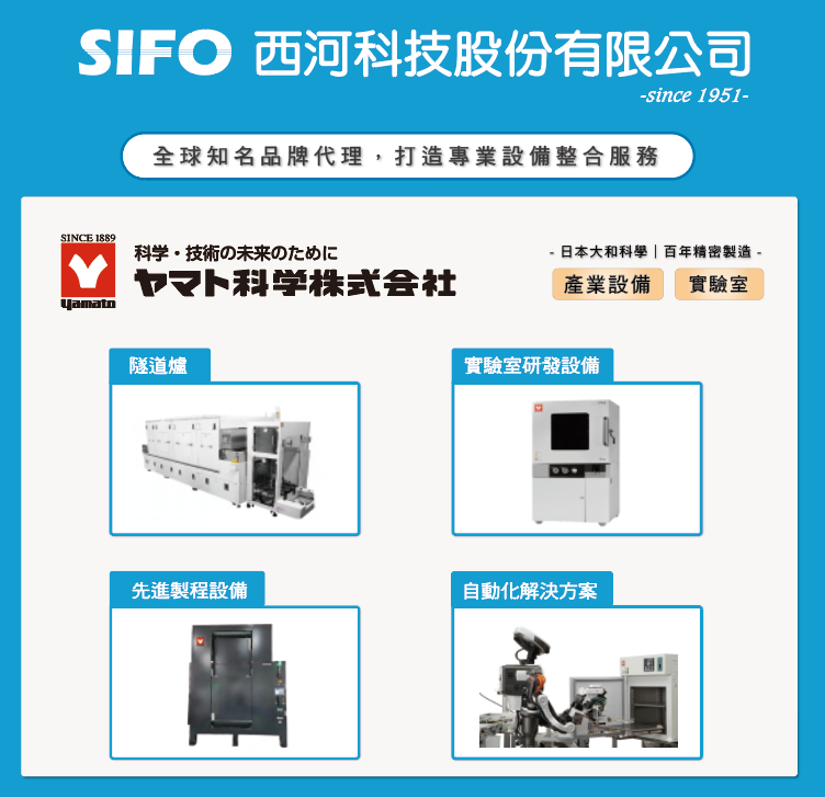 除了Yamato,西河科技代理許多全球知名品牌,打造專業設備服務,提供實驗室到產業界,一站式設備整合方案。