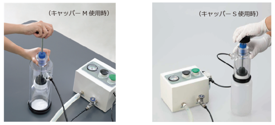 專為堅固耐用的硬質或小型真空瓶設計。其小巧的設計使其只需覆蓋任何真空容器的蓋子即可使用。對於小型試管(例如螺旋蓋瓶),封蓋器S 也可像封蓋器M一樣蓋住整個容器。